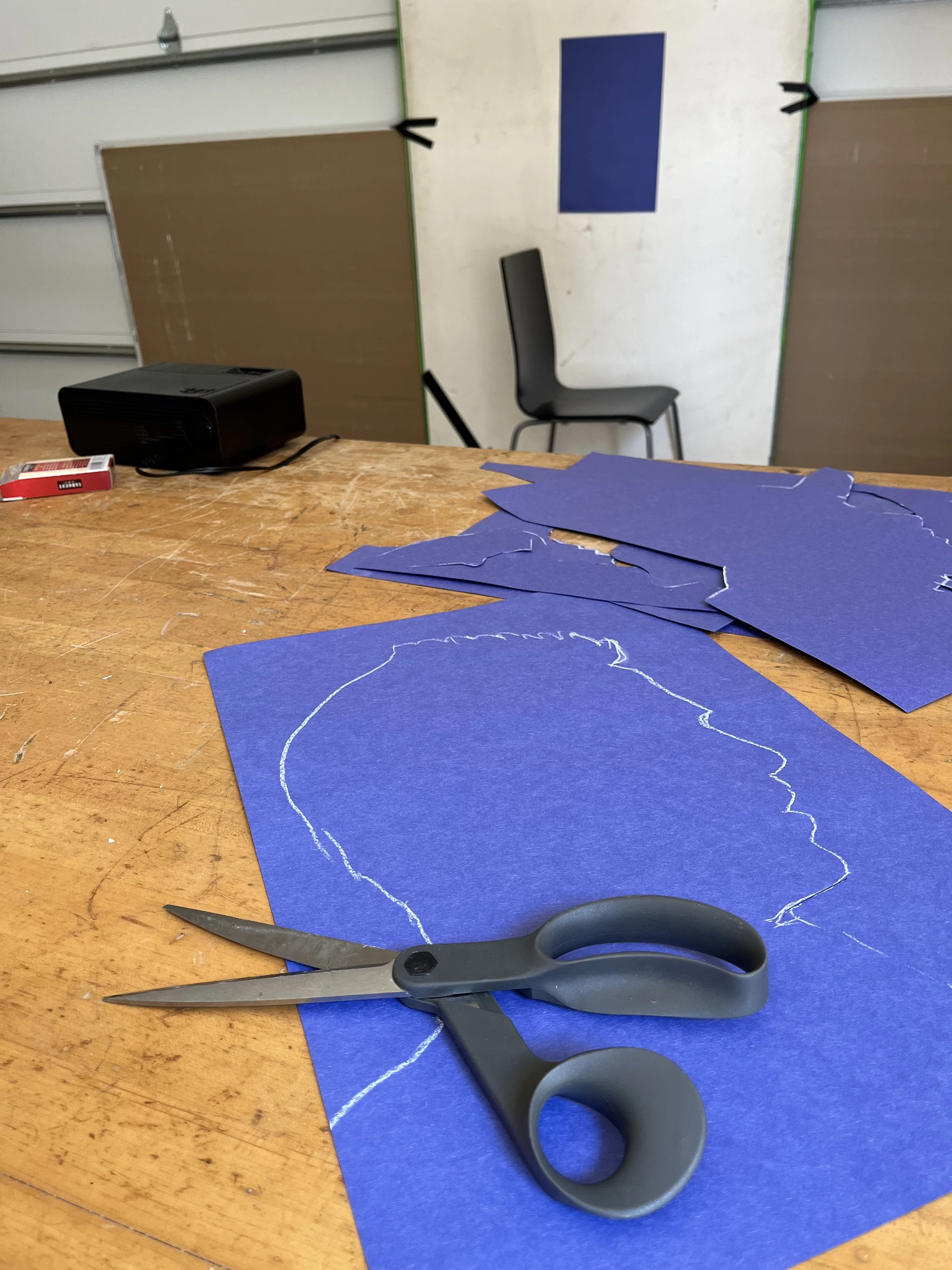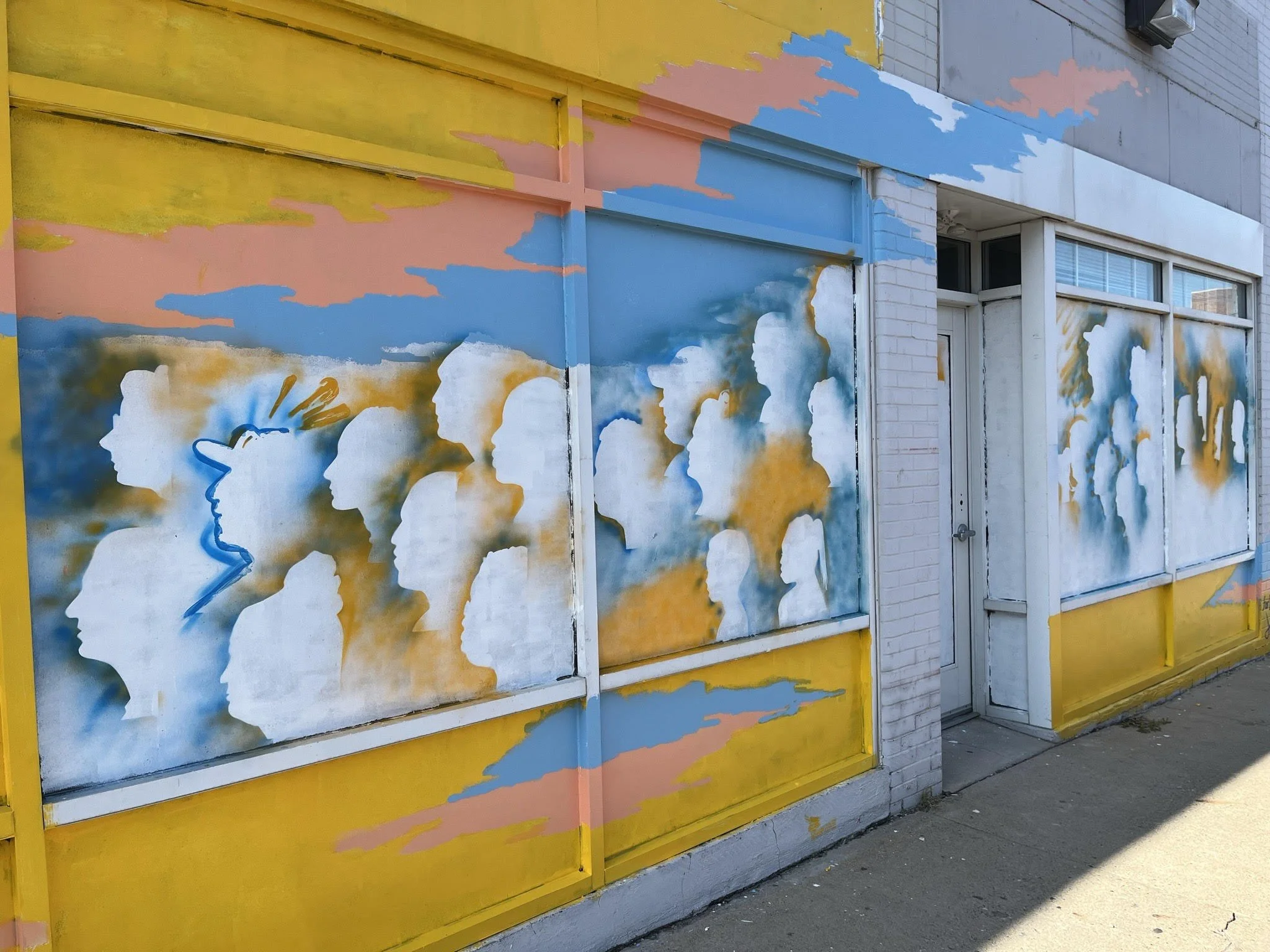 Cloud mural painted over a 24 hour period, utilizing silhouettes of community members, PS1 Art-a-Thon 2022